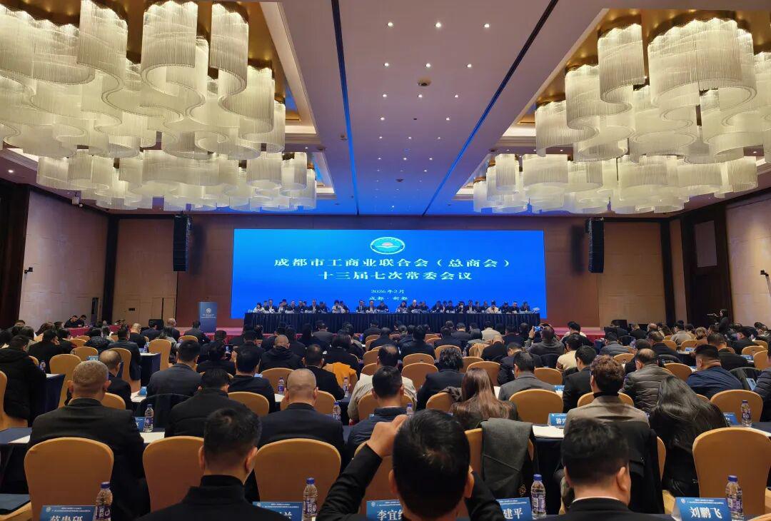 2026年2月1日,成都市工商联(总商会)十三届五次执委会顺利召开。市委常委、统战部部长,市总工会主席刘玉泉出席会议并讲话。市委统战部副部长、市工商联党组书记廖俊主持会议。市工商联主席、总商会会长俞建作工作报告。市工商联(总商会)十三届执委会主席(会长)、常务副主席、副主席(副会长)、秘书长、执行委员等共300余人参加会议。