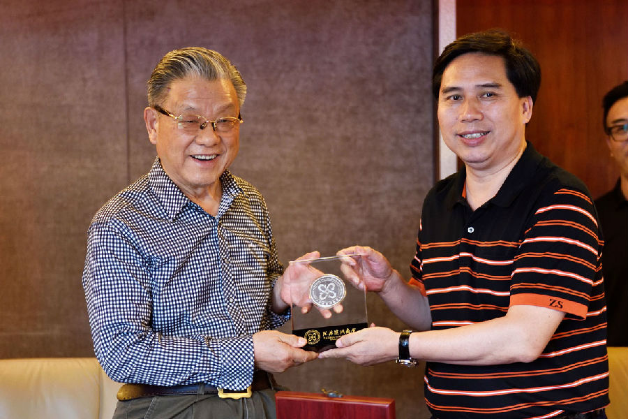 成都达州商会执行常务副会长兼秘书长郑权国赠送我会纪念品给中国林业经济学会会长、原国家林业局党组副书记、副局长李育材