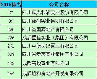 2015年入围全国500强川籍房企名单